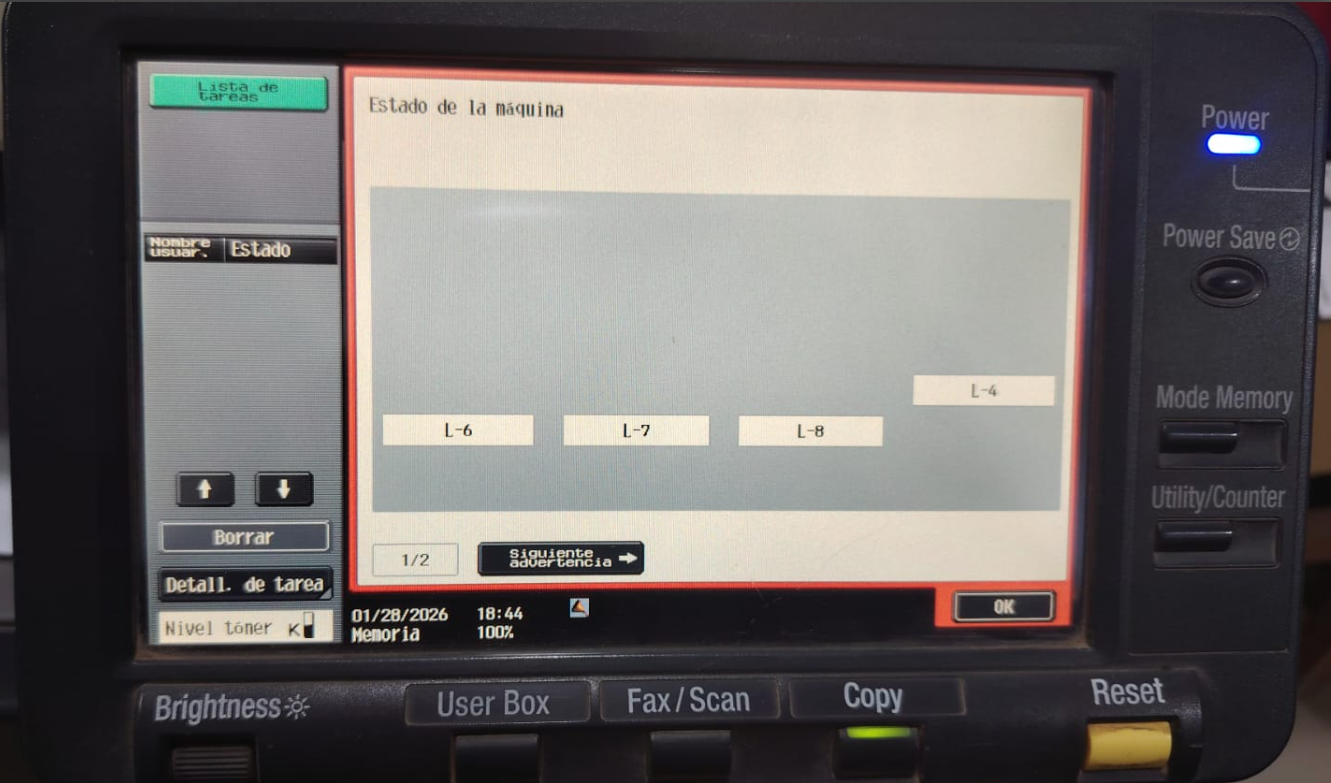 El código L-8 es una advertencia del Paper Dust Remover, indicando que ha excedido su vida útil.