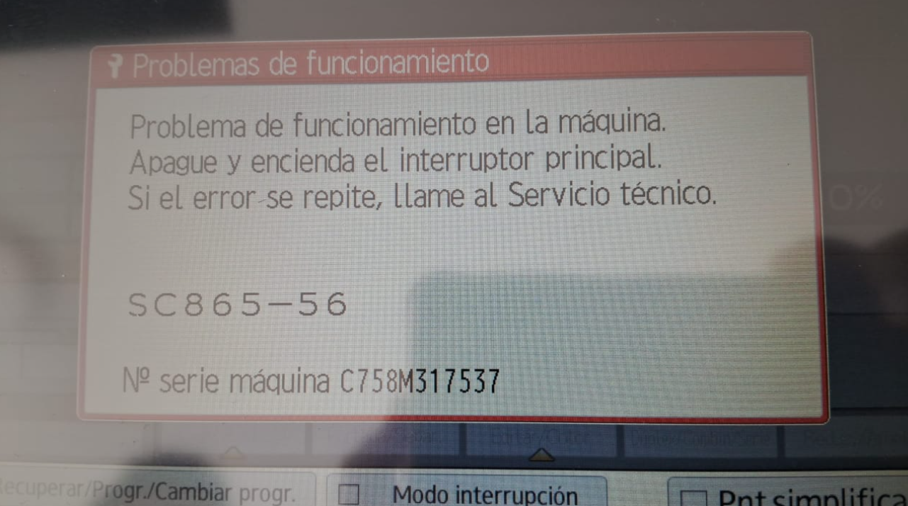 El SC865-56 indica una falla de comunicación con el disco duro. Generalmente se debe a problemas de conexión o a un HDD dañado que debe ser reemplazado. Una revisión preventiva del cableado puede descartar falsos contactos antes de cambiar el disco.