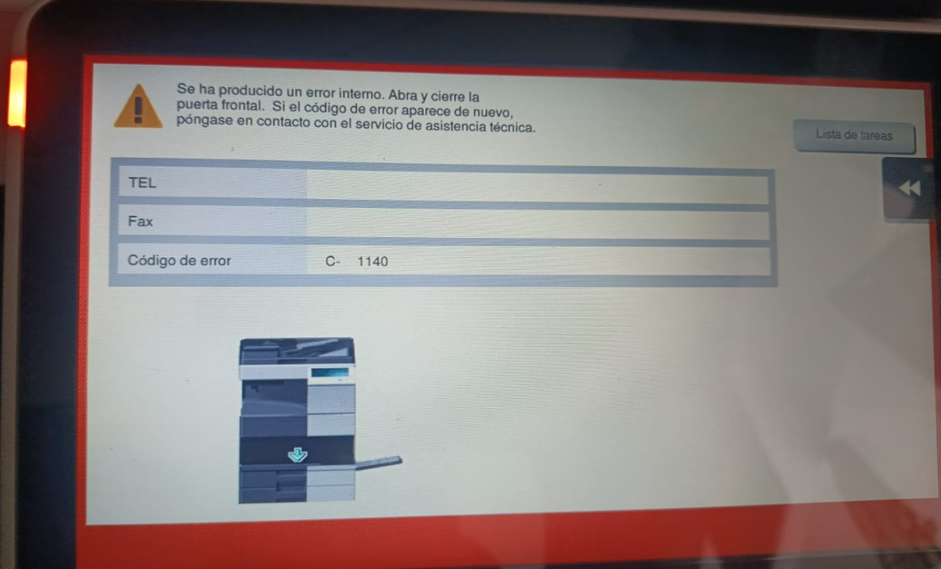 El código C-1140 siempre está relacionado con un fallo en el mecanismo de alineación del finisher, y depende del motor/sensor según el modelo: