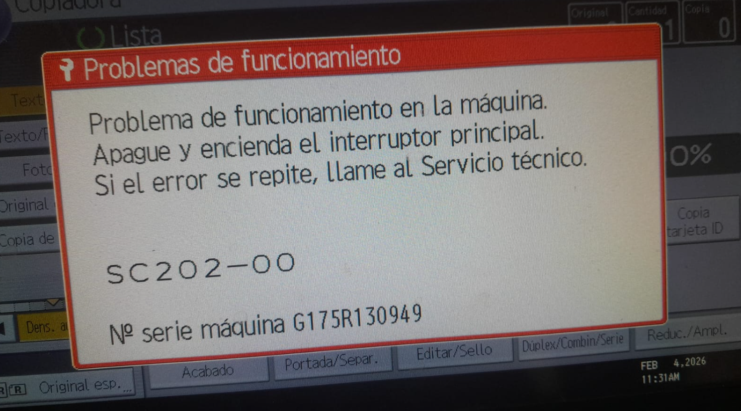 El error SC202-00 está directamente relacionado con el conjunto láser y el motor poligonal.