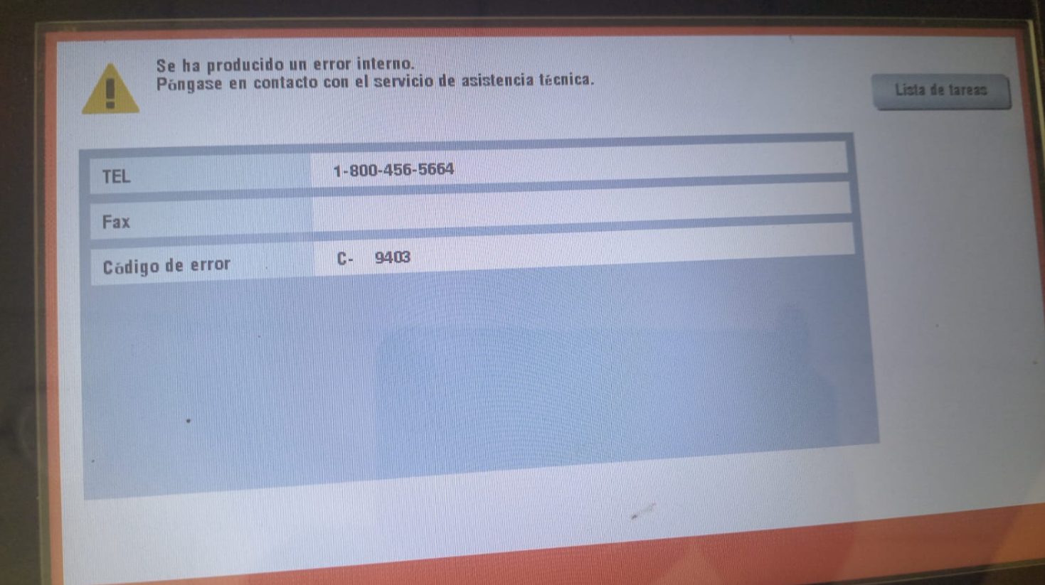 El C9403 es un error de baja iluminación en el sistema CIS.