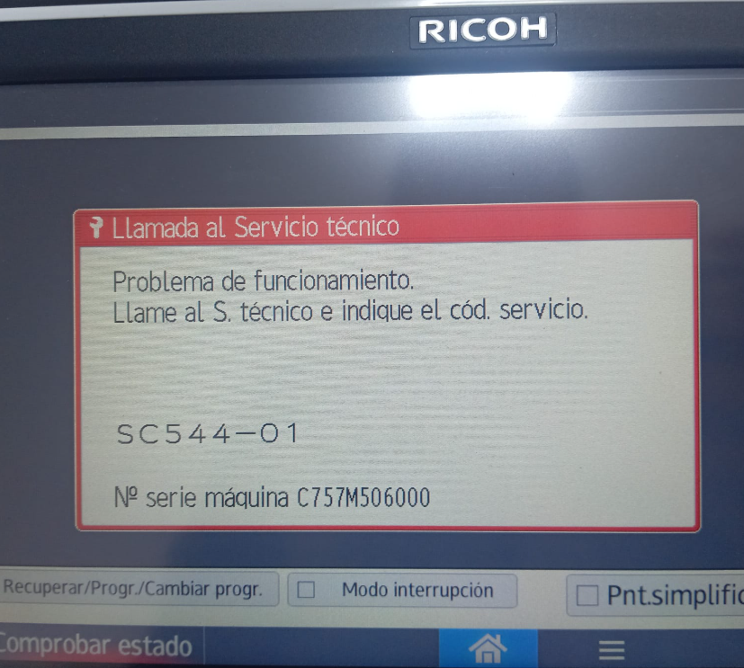 El SC544-01 es un error crítico de sobretemperatura del fusor.