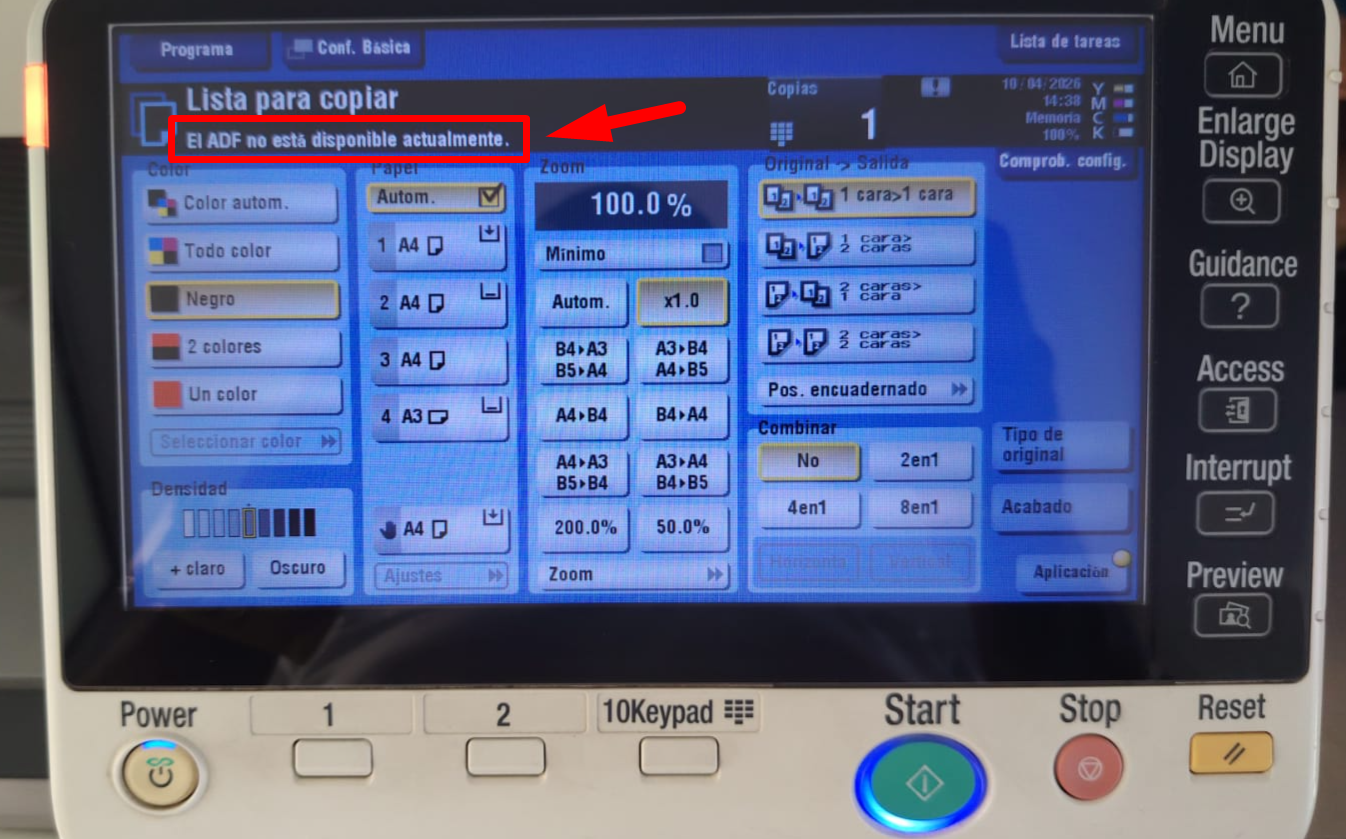 El mensaje “ADF no disponible” generalmente NO es falla mecánica.