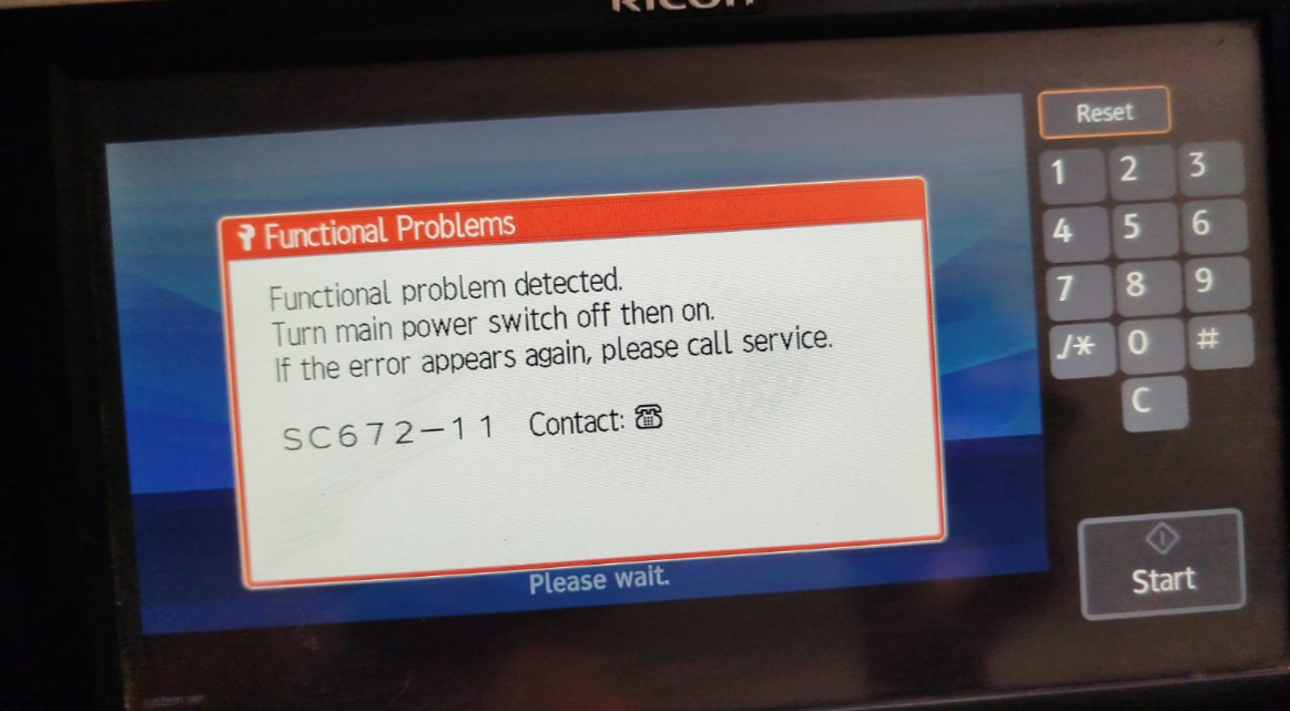 El error SC672-11 es un fallo crítico de comunicación entre el Operation Panel y la Controller Board. Según nuestra experiencia: