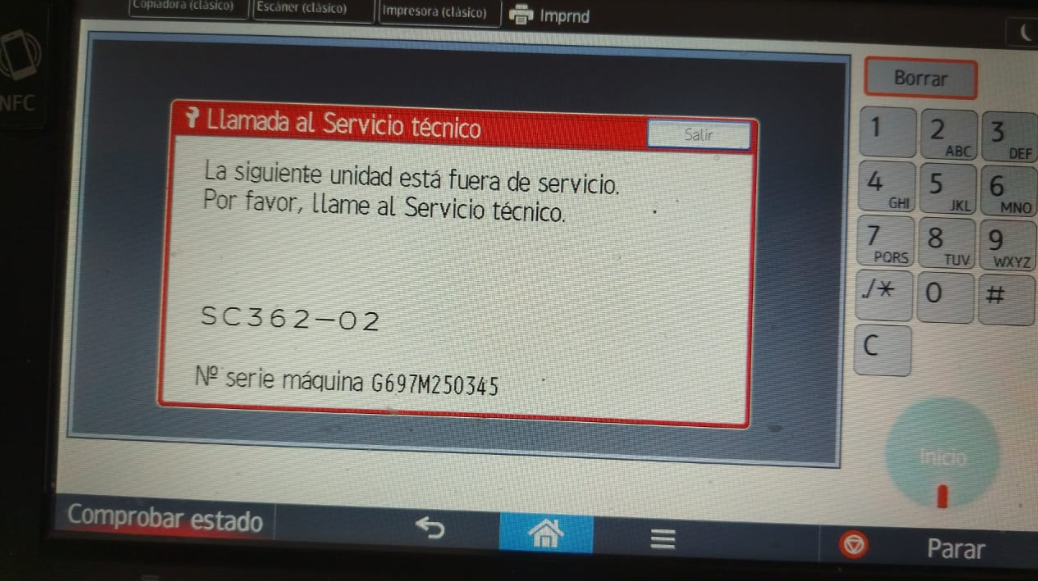 El error SC362-01 al SC362-04 es un indicativo de un problema en la lectura de densidad de tóner, siendo común cuando el equipo ha recibido una unidad mal instalada, dañada o con componentes no originales. Seguir el procedimiento técnico y revisar el SP correspondiente permitirá restablecer la operatividad del equipo.
