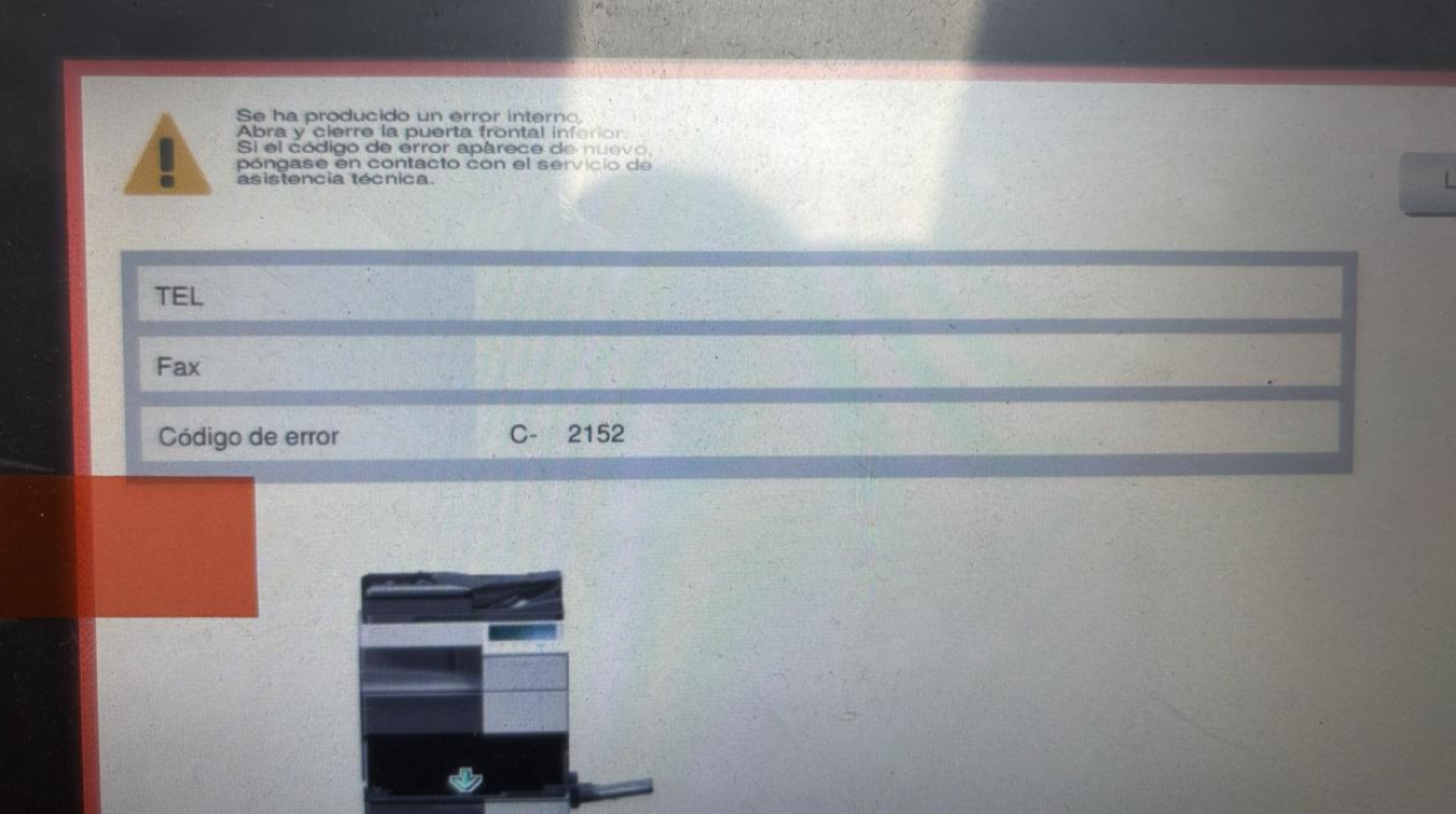 Desde Importaciones Pérez confirmamos que el error C-2152 está directamente relacionado con la falla en el retorno inicial de la correa de transferencia, generalmente ocasionado por fallos mecánicos, eléctricos o en el motor M21.