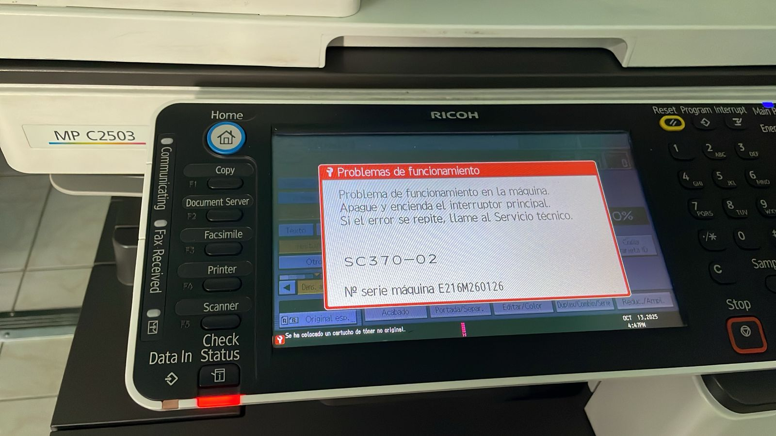 El SC370-02 suele estar ligado a suciedad o fallas en la correa de transferencia. Una limpieza cuidadosa y verificación de conexiones son pasos clave antes de cambiar repuestos.