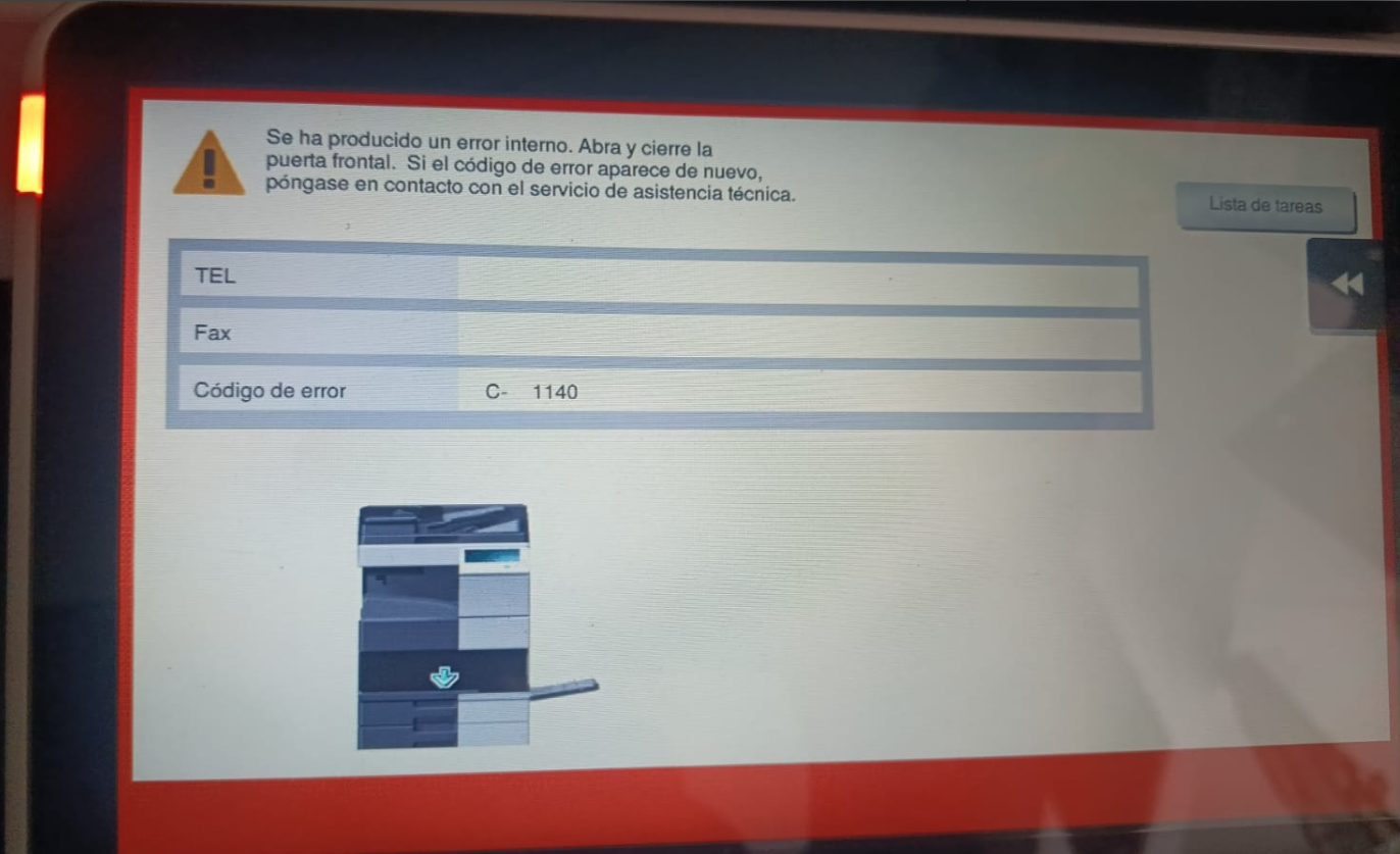 El código C-1140 indica un fallo del sistema de alineación del finisher.